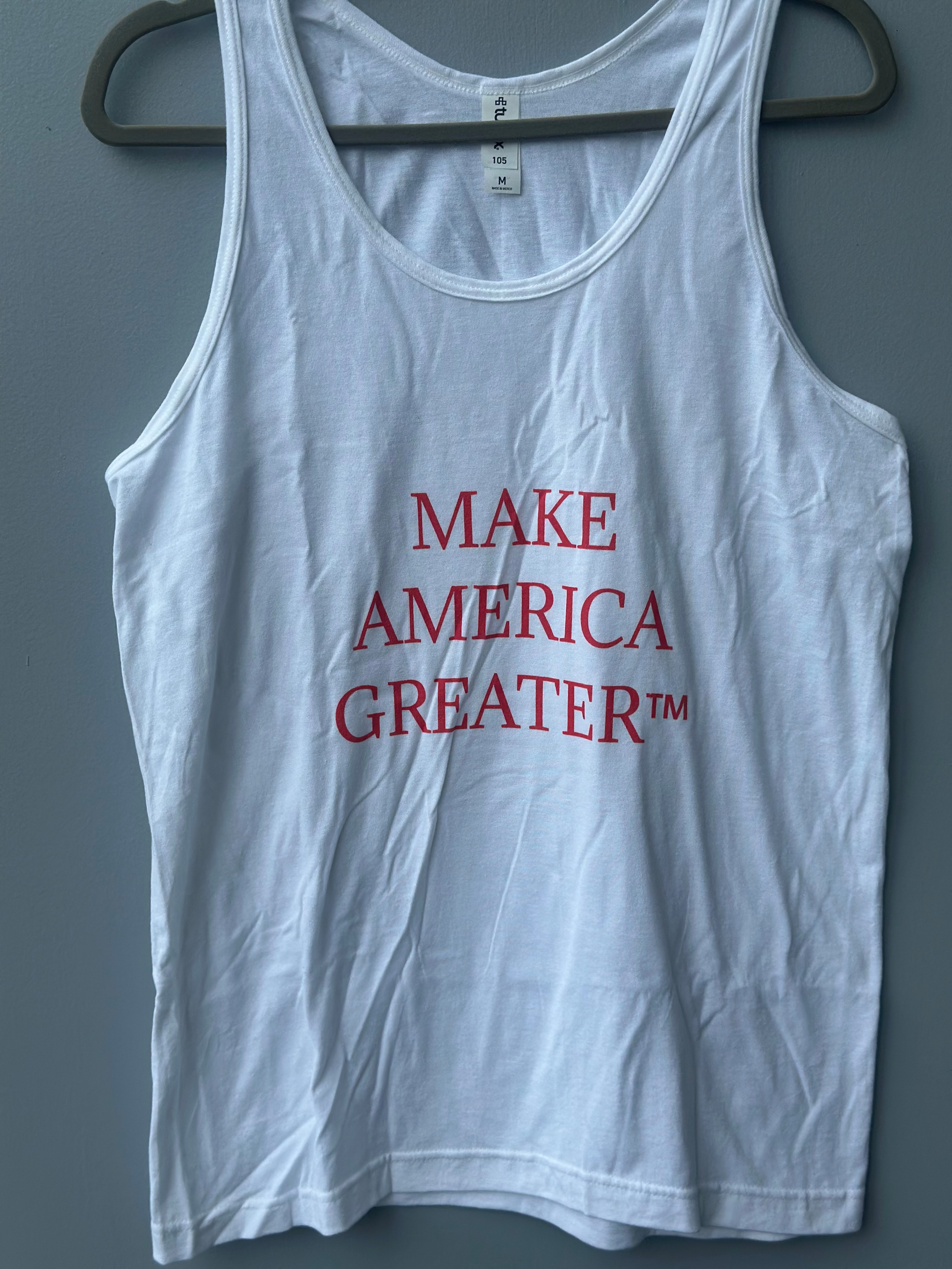 This fashionable tank-top will be perfect for warmer months. Show off your patriotic spirit by proudly displaying the Make America Greater™ slogan.