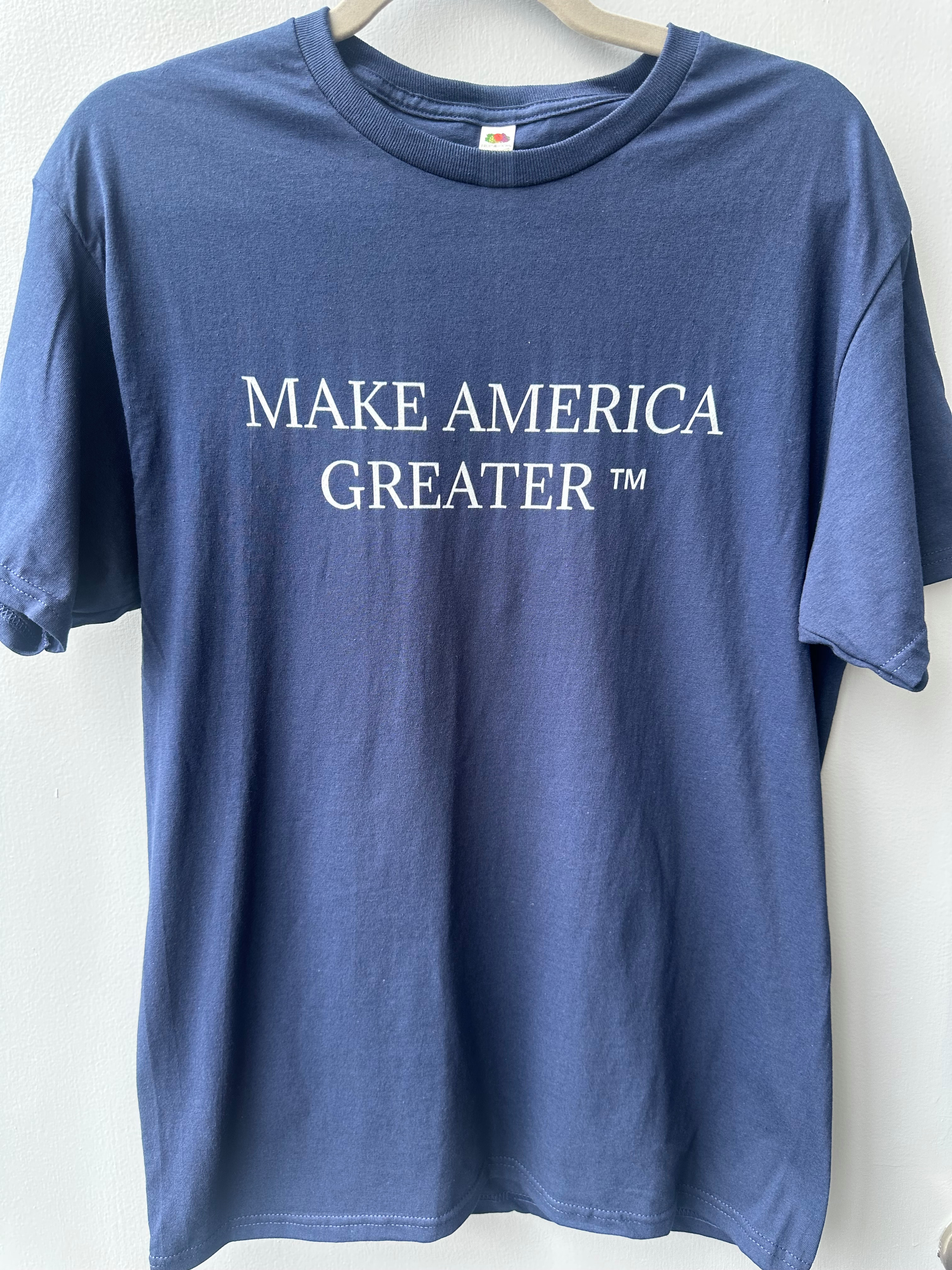 Our best- selling Make America Greater™ T-shirt features a shorter hemline so that it hangs at the belt line.